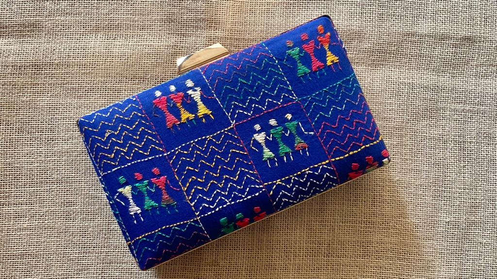 “Experience the Rich Cultural Heritage of India with Our Royal Blue Kantha Clutch”